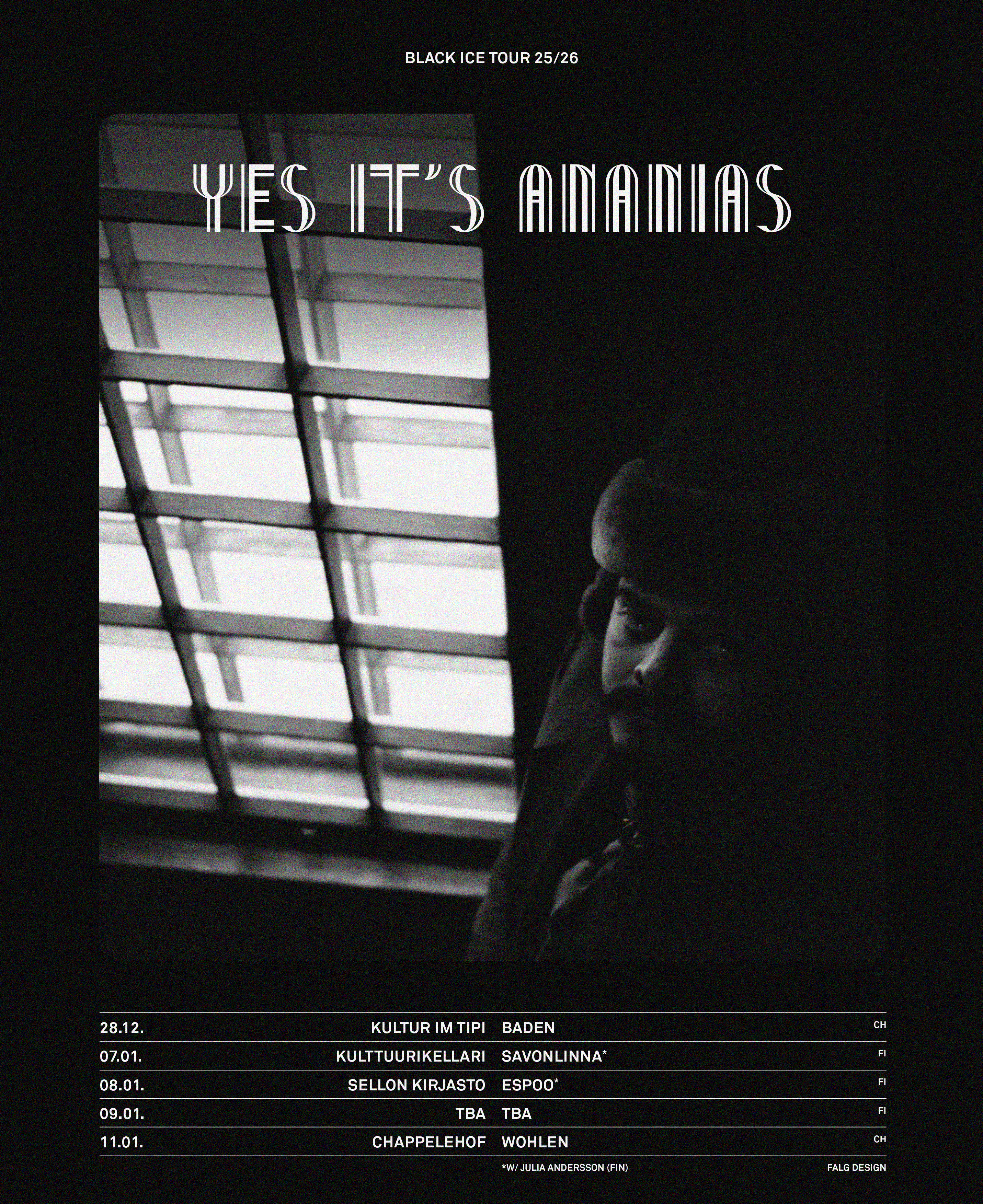 While other coorperate adventures have taken place, such as original music of Yes It's Ananias being selected in the very prominent "Post-Classical made in Switzerland" Playlist by SWISS Airline/Lufthansa, additionally with his Collabo Album "Fluxus Verve" on Hawaiian Airlines' "Ambient Playlist" in 2024 on all long-distance flight bord entertaining systems, aswell as the SBB CFF FFS "Trainstation Piano" Campaign where he appears in their Promo-Vid, Yes It's Ananias is constantly forming his Improvisations to clearer audiophile gemstones from each tour and Concert he ticked off his very piccadilly circus'ish travel and tourplans while promoting, booking, managing and pitching the brand new album himself simultaniously. His Compositions got aired on German "Radio EINS" as well as being used for documentaries in Canadian and Brazilian TV Shows.
